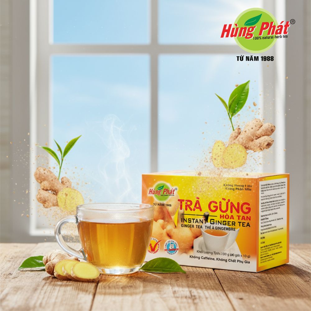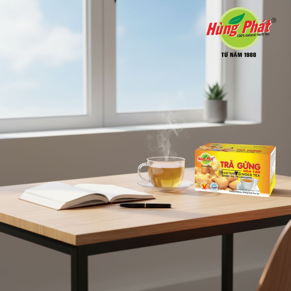 Chính vì vậy, các loại trà có cách chuẩn bị nhanh gọn thường được nhiều người lựa chọn. Trong số đó, Trà Gừng Hòa Tan Hùng Phát là một trong những lựa chọn quen thuộc nhờ cách pha đơn giản và dễ mang theo.