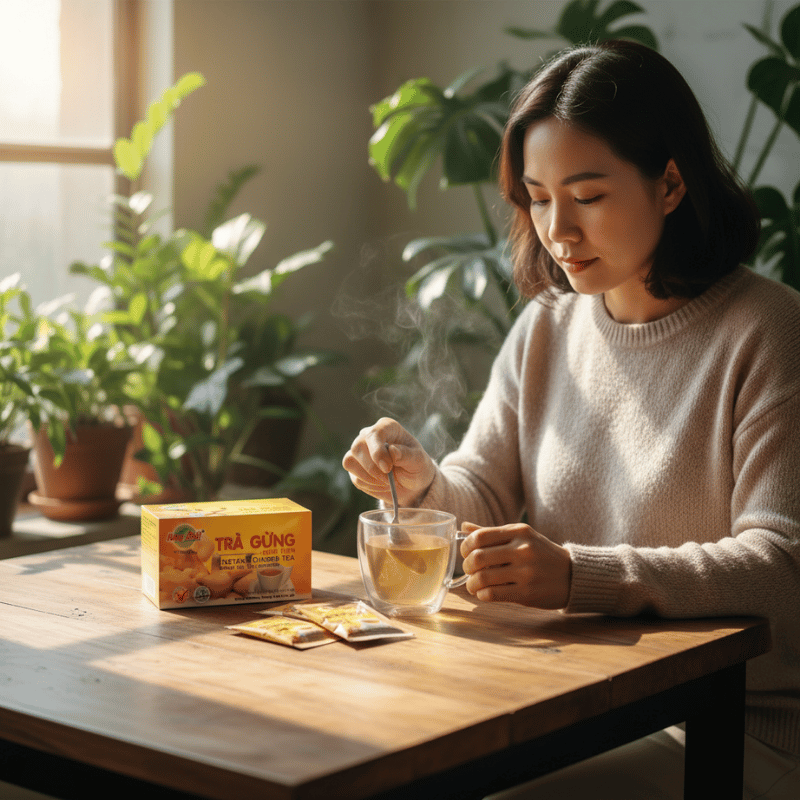 Sự đơn giản này giúp việc pha trà gừng trở thành thói quen dễ duy trì, ngay cả trong những ngày bận rộn.