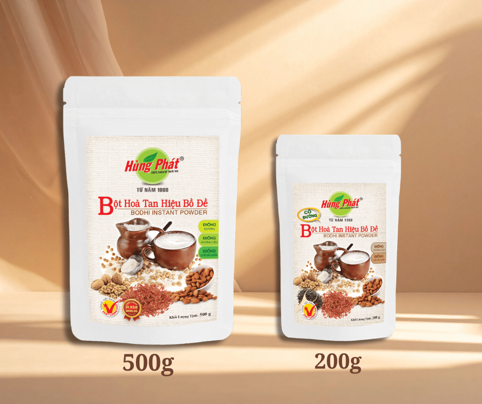 Bột Hòa Tan Hiệu Bồ Đề được sản xuất với quy cách 200g và 500g, thuận tiện cho cá nhân hoặc gia đình sử dụng lâu dài. Sản phẩm được bảo quản nơi khô ráo, sử dụng nước sôi để pha nhằm đảm bảo chất lượng.