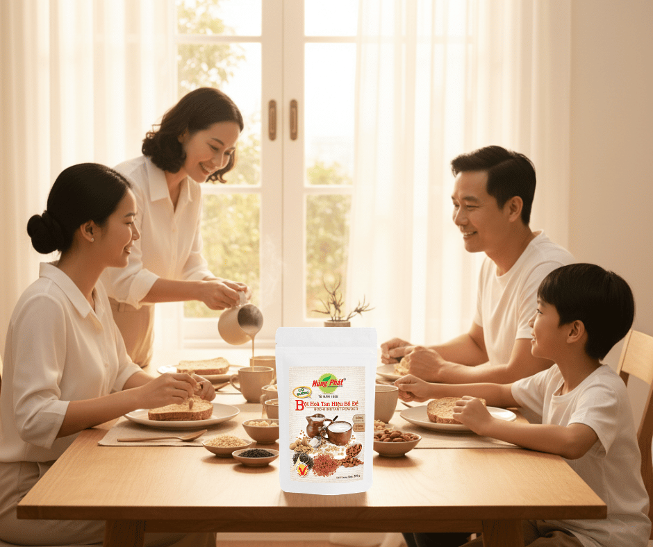 Bột Hòa Tan Hiệu Bồ Đề được nhiều người lựa chọn cho vai trò này. Với thành phần từ gạo lứt, hạt sen, hạnh nhân, mè, bột sắn dây cùng các nguyên liệu quen thuộc, sản phẩm tạo nên cảm giác gần gũi, không xa lạ với khẩu vị Việt.