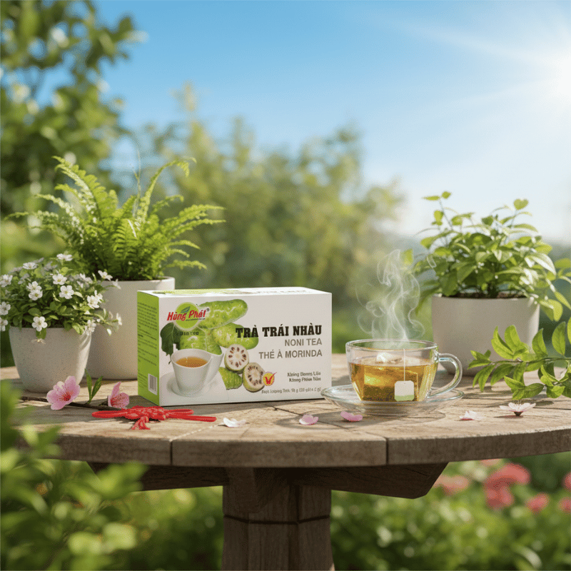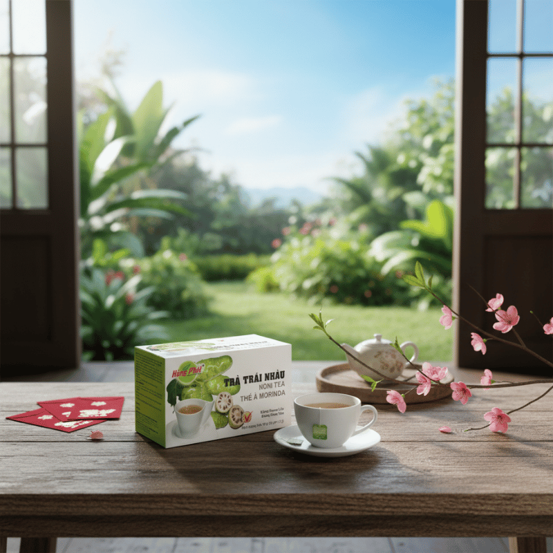 Ẩm thực Tết vốn phong phú và đậm đà. Trong bối cảnh đó, trà đóng vai trò như một khoảng lặng cần thiết. Một tách trà nhẹ sau bữa ăn giúp câu chuyện tiếp nối tự nhiên hơn, không bị ngắt quãng bởi cảm giác quá no hay quá nặng. Trà Trái Nhàu Hùng Phát có thể được thưởng thức sau bữa cơm gia đình, trong lúc dọn dẹp hay khi khách vẫn còn ngồi lại trò chuyện. Vị trà hài hòa giúp cân bằng cảm giác, để những ngày Tết diễn ra trọn vẹn mà không quá mệt mỏi.